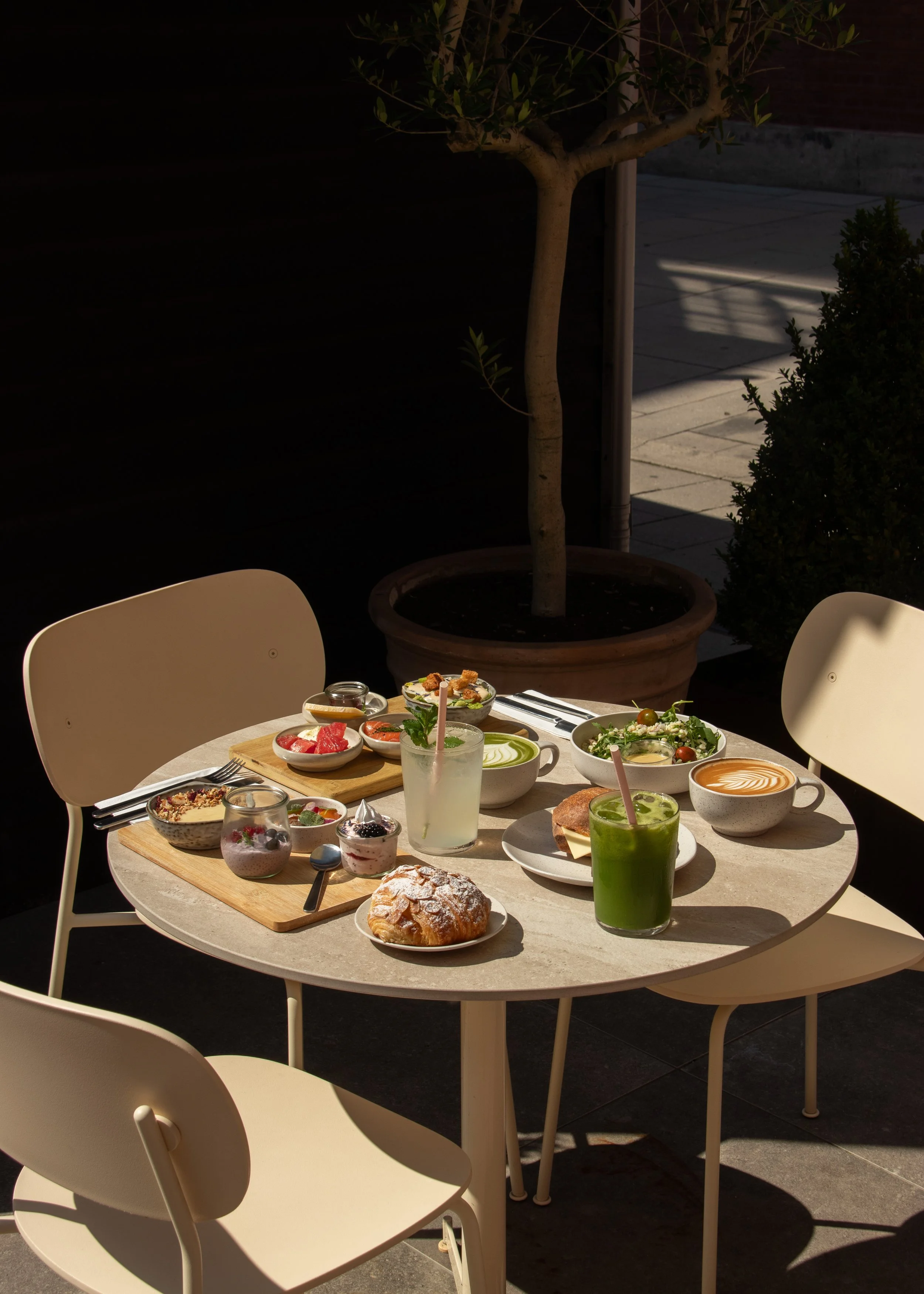 I alle vores butikker kan du nyde din brunch indenfor i varmen eller udenfor, hvor vi altid har plads i solen eller under parasollerne.